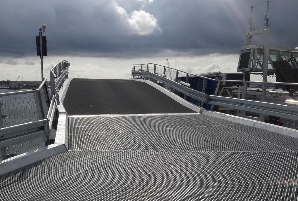 We zijn ons ervan bewust dat onze oplossingen deel uitmaken van een groter verhaal. We werken dan ook graag samen aan projecten met de beste partners. Op de veerhaven was een groot deel van de plek gereserveerd voor onze roosters. We hebben 27 ton Gedruklaste roosters standaard geleverd met een maaswijdte van 34x38 mm en draagstaven van 60x5 mm. Onze roosters en panelen vind je terug op de laadbrug bestemd voor voertuigen. Het type roosters dat we mochten leveren is bestand tegen de zwaarste omstandigheden. Zelfs bij de vochtige omstandigheden aan zee blijven de roosters toegankelijk door de gedraaide dwarsstaven.
